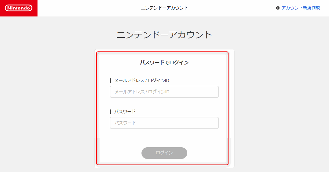 ニンテンドーサイトのログイン画面になるので、トモコレを遊ぶようのアカウントのIDとパスワードを入力しログインします。
