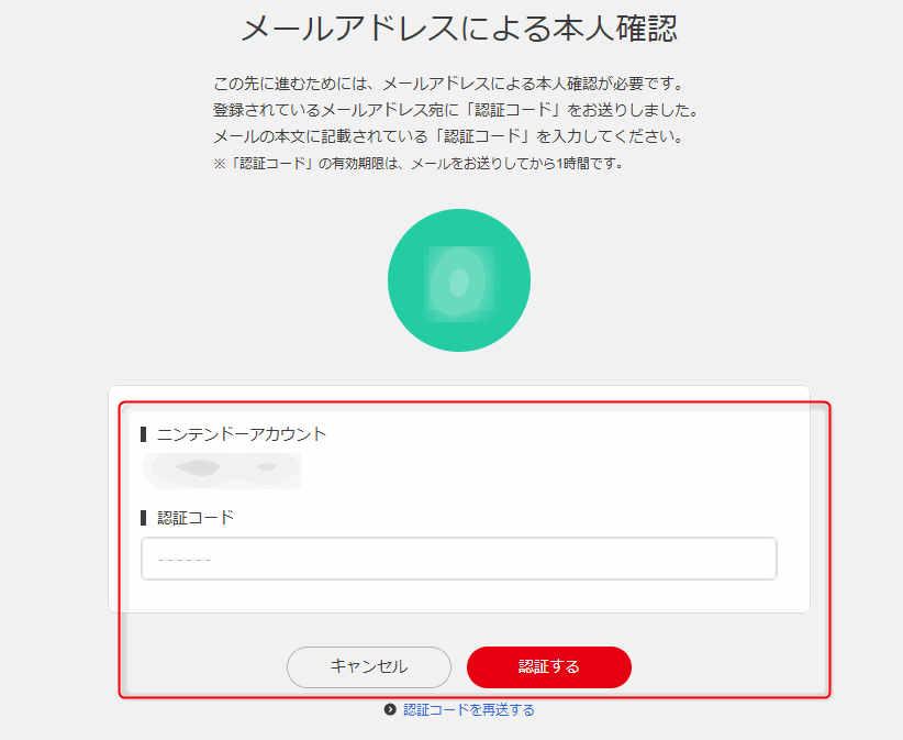 メールアドレスでの本人確認がありますので、登録されているメールを確認し、認証コードを入力して認証します。