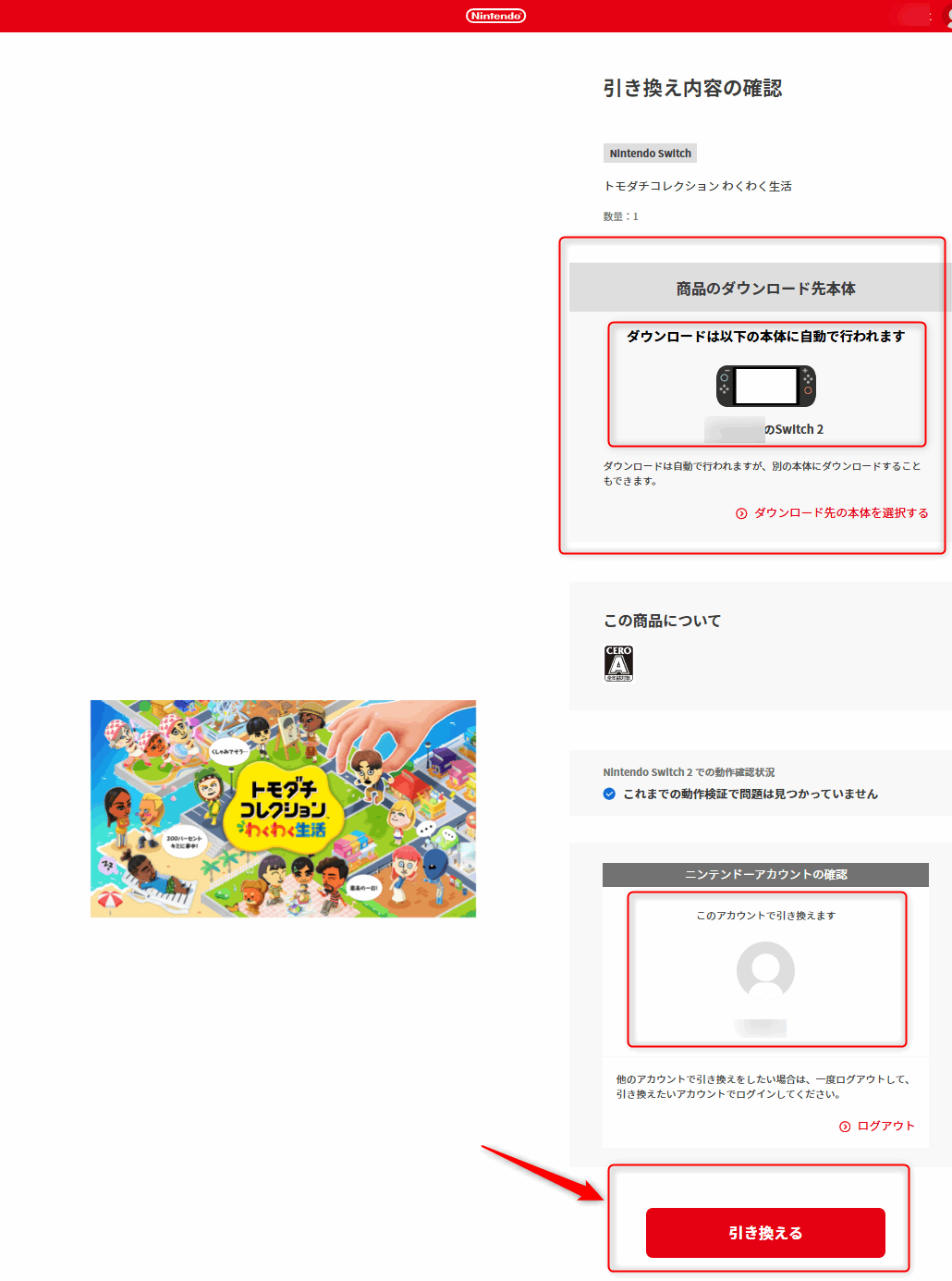 手順③ニンテンドーサイトから引き換え&ダウンロード